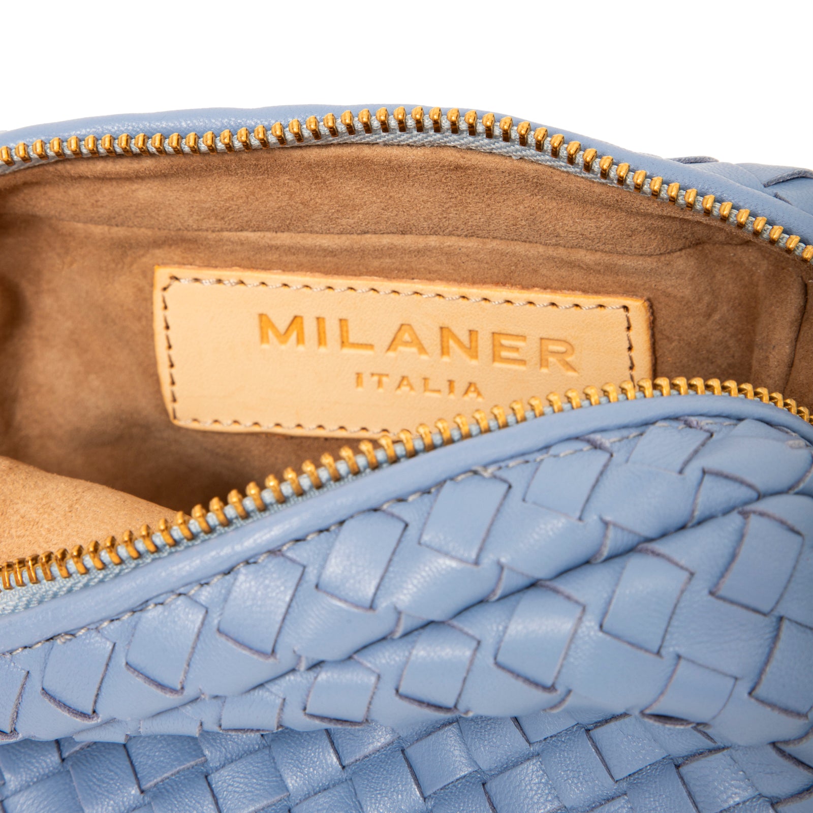 Das klassische Cabrio-Armband mit einem eleganten, gewebten Leder-Upgrade. Diese gewebte Mini-Tasche wurde so konzipiert, dass sie zu allem passt, von Jeans bis hin zu Ihrem Kleinen black Kleid aus 100% Wildleder, mit Satinfutter und zwei abnehmbaren Riemen, mit denen es sich von einer Handgelenktasche in eine Umhängetasche verwandeln lässt – in jedem Fall ein eleganter Look, der die Hände frei lässt.